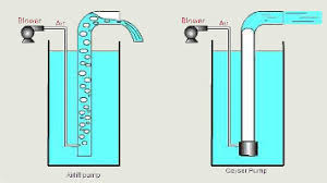 Cet air lift de démonstration vous montre tout, le grand principe est le déplacement d'un liquide par un flux de bulle.